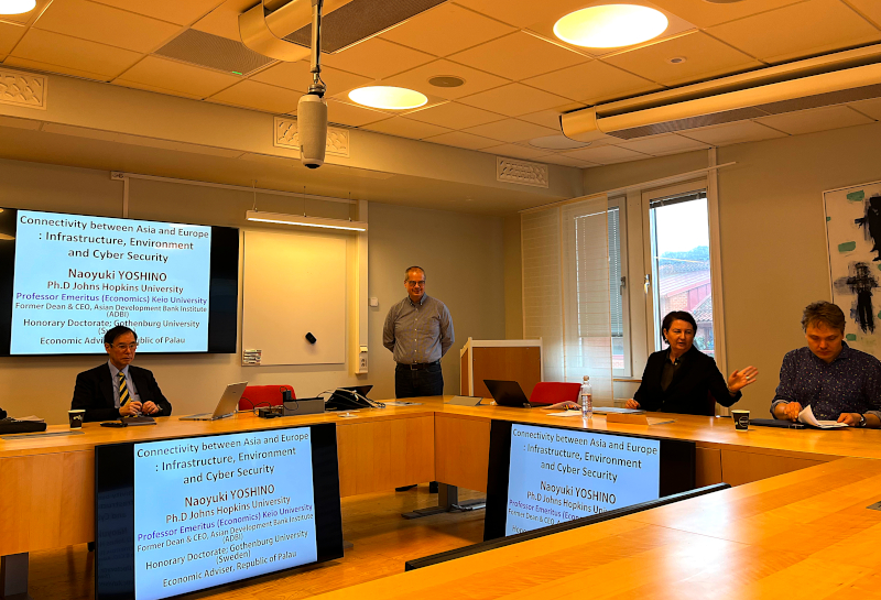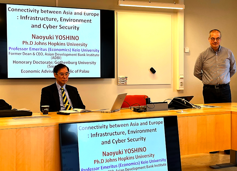 The guest of honour was Professor Emeritus Naoyuki Yoshino of Keio University, Tokyo, a Johns Hopkins-trained economist whose career spans monetary policy, infrastructure finance, green finance, and most recently, cyber security governance. Professor Yoshino holds an honorary doctorate from the University of Gothenburg, making this visit a homecoming of sorts, and has served as Dean and CEO of the Asian Development Bank Institute (ADBI). He is also Economic Adviser to the Republic of Palau.